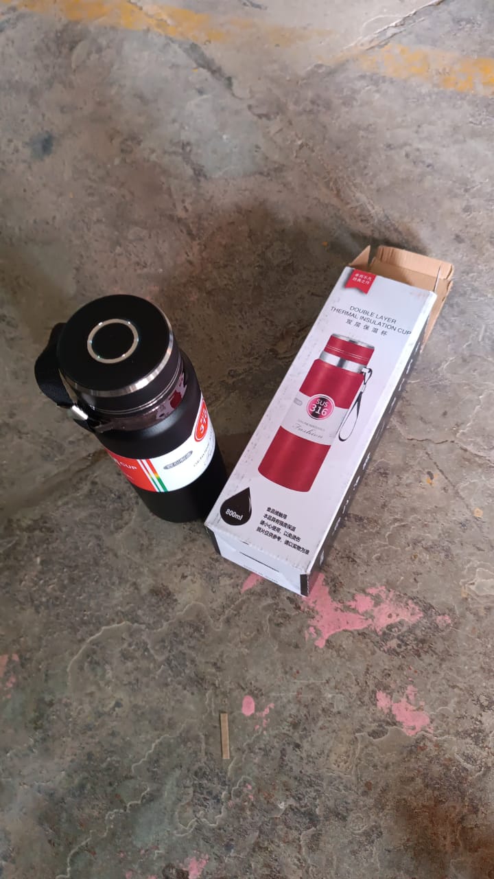 • Stainless-steel Thermos water bottle ; ideal for home, school, the office, or on the go.